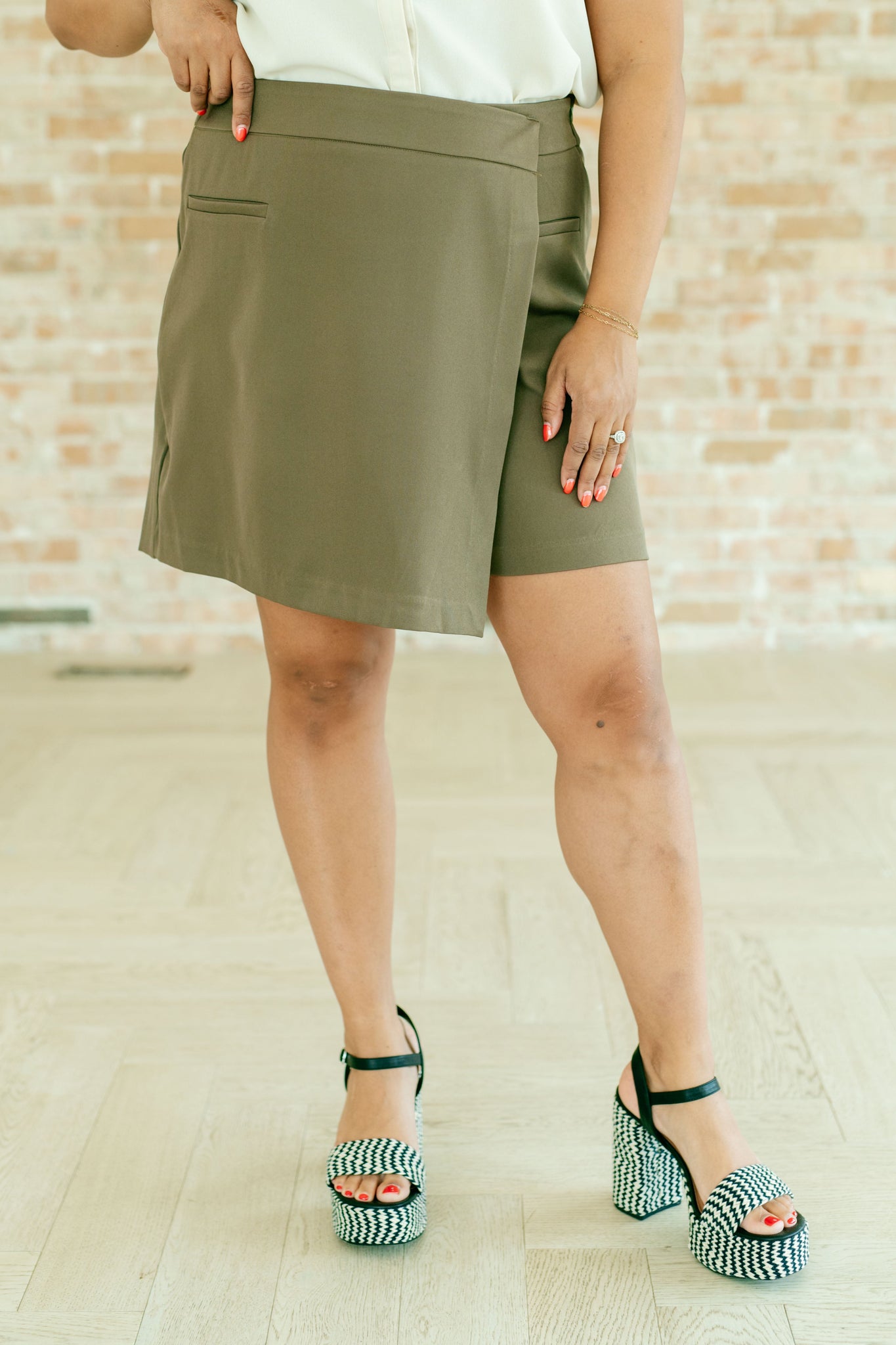 Be the envy of All Your Friends with this playful and stylish Skort! Made from a classic suiting material, it features a cased elastic back for a comfortable fit, a faux welt pocket for added flair, and a side zipper closure for easy wear. The faux wrap design adds a fun twist to this must-have skort.